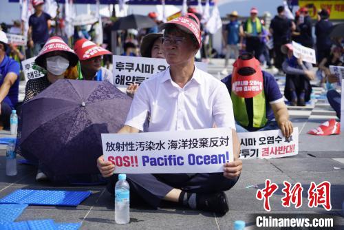此前,韓國全國漁民會總聯(lián)盟在全羅南道、仁川市等地舉行多次集會,抗議日本核污染水排海。
