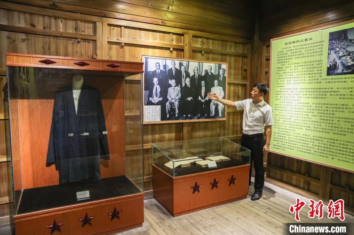 8月11日,梅汝璈第四代后人梅庭軍正在故居內(nèi)講解“東京審判”的故事。中新社記者 劉力鑫 攝
