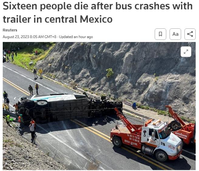 據(jù)報(bào)道,瓦哈卡州檢察官辦公室在聲明中表示,這輛大巴車在瓦哈卡州和普埃布拉州交界處附近的高速公路上與一輛拖車相撞。