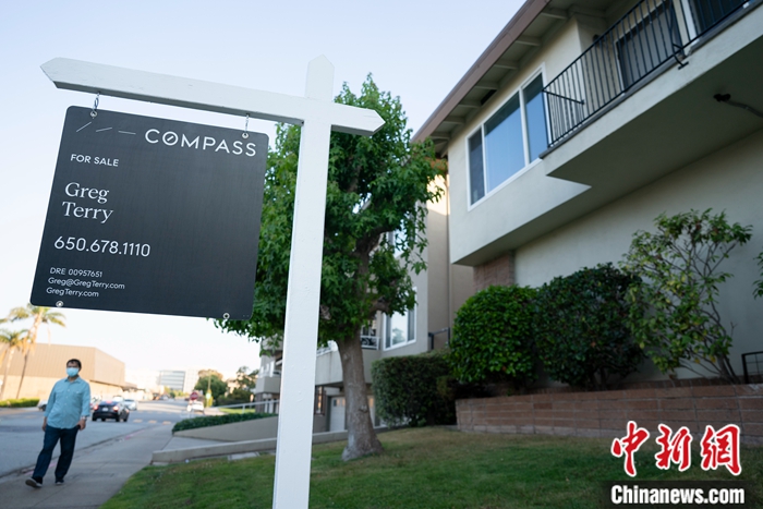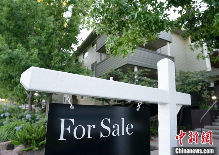 當(dāng)?shù)貢r(shí)間8月22日,美國(guó)加州圣馬特奧縣一處公寓前掛出售房廣告。中新社記者 劉關(guān)關(guān) 攝