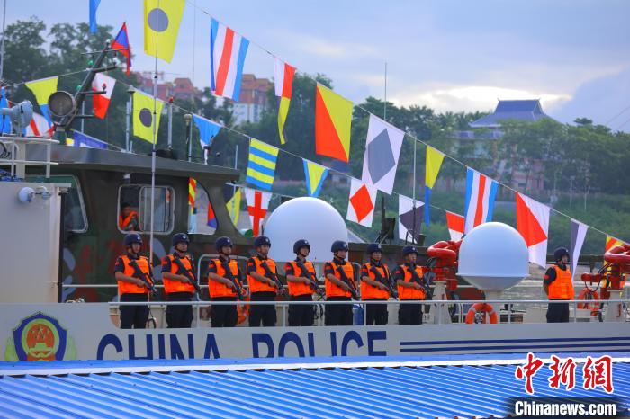 8月22日9時,第132次中老緬泰湄公河聯(lián)合巡邏執(zhí)法行動正式啟動。圖為聯(lián)合巡邏執(zhí)法編隊(duì)從中國西雙版納景哈警務(wù)碼頭啟航。 (云南省公安廳 供圖)