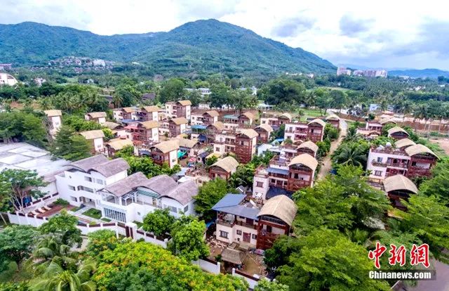 資料圖:保亭三道鎮(zhèn)黎族村莊什進(jìn)村村民的房屋,屋頂造型源自黎族傳統(tǒng)民居船型屋。駱云飛 攝