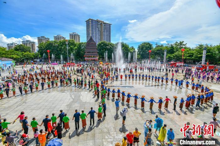 嬉水節(jié)活動現(xiàn)場,臺灣同胞與當(dāng)?shù)孛癖娨坏垒d歌載舞歡度“七夕”?!●樤骑w 攝