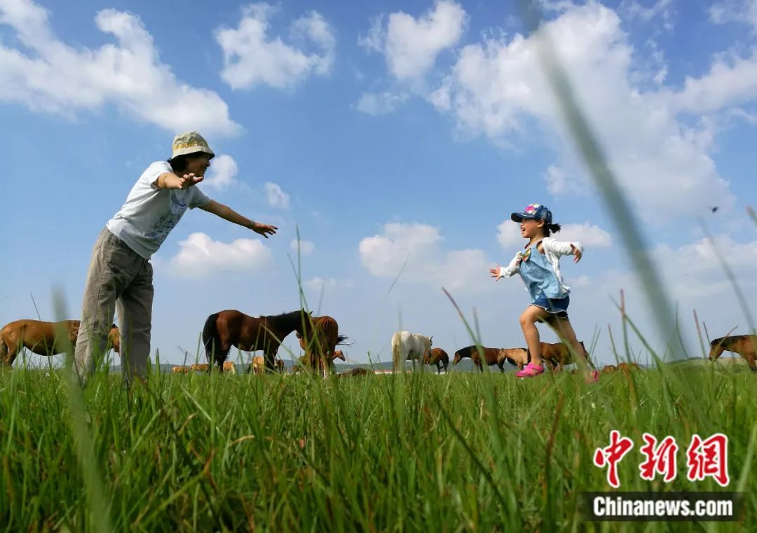 2016年8月,祖孫倆在塞罕壩機(jī)械林場(chǎng)內(nèi)玩耍。在半個(gè)多世紀(jì)的時(shí)間里,塞罕壩人將昔日飛鳥不棲、黃沙遮天的荒原,變成百萬(wàn)畝人工林海。楊可佳 攝