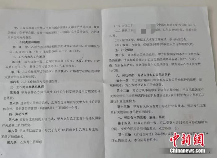 2017年,李月與醫(yī)院簽訂的勞動合同,期限為一年。 受訪者供圖