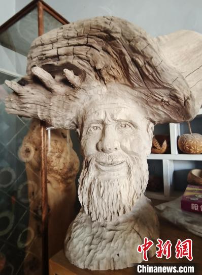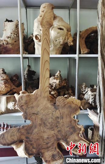 52歲的戴新是新疆生產(chǎn)建設(shè)兵團第一師十團苗木基地的技工,因長年癡迷于根雕藝術(shù),依靠當(dāng)?shù)囟鄻拥牧謽I(yè)資源制作各類根雕,不僅建起根雕廠,還利用閑置的房屋,分門別類設(shè)立了多間根雕展示廳。