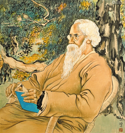 《泰戈?duì)栂瘛?,徐悲鴻繪。