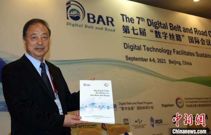 9月4日,第七屆“數(shù)字絲路”國際會議在北京開幕,DBAR主席郭華東院士展示當天最新發(fā)布的《地球大數(shù)據(jù)助力“一帶一路”可持續(xù)發(fā)展》報告。中新網記者 孫自法 攝