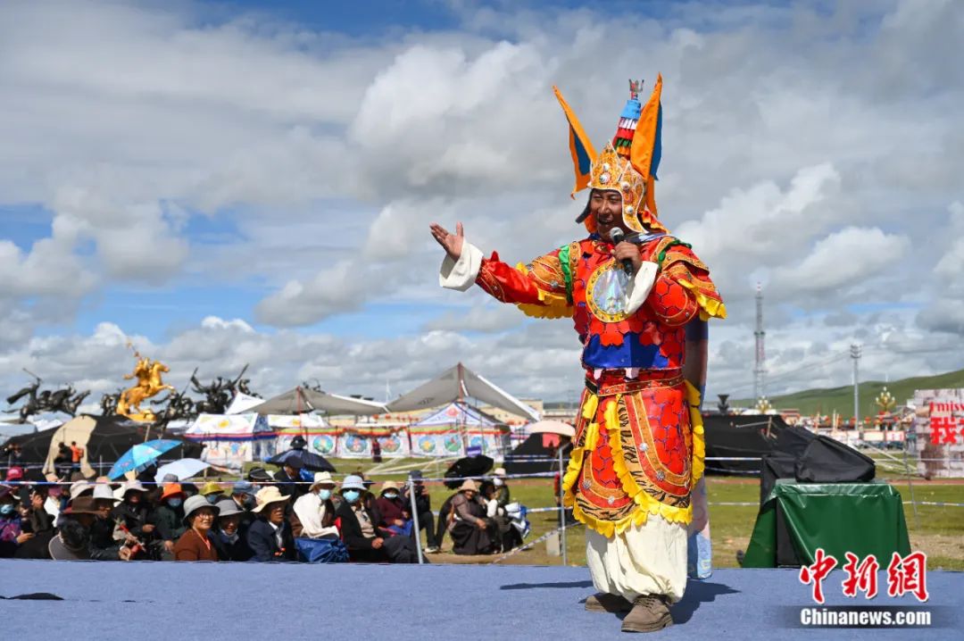 2023年8月9日,那曲賽馬節(jié)上,格薩爾說(shuō)唱藝人登臺(tái)演出。趙朗 攝