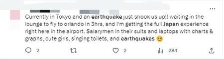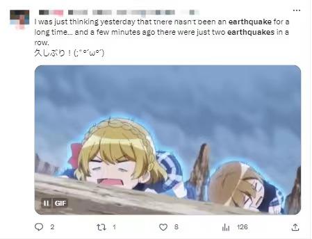 有網(wǎng)友在社交媒體上表示,“昨天還在想(日本)很久沒發(fā)生地震了,幾分鐘前卻連續(xù)發(fā)生了兩次地震。”