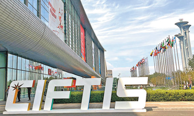 圖為2023年服貿(mào)會國家會議中心展區(qū)外景。