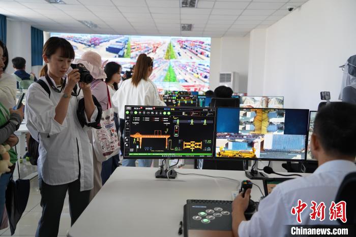 “像抓娃娃一樣”“操作桿仿佛游戲手柄”......看著工作人員在電腦上遠程操控自動化龍門吊,多位臺灣媒體人感慨,“黑科技”讓操控數噸重的集裝箱舉重若輕。