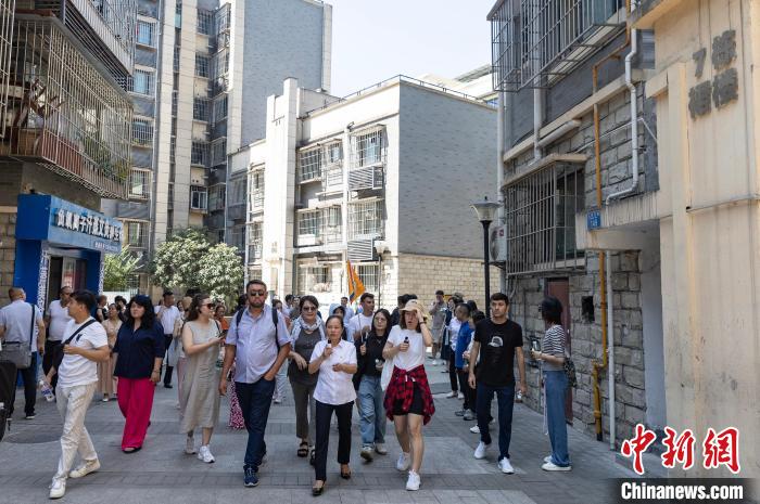 9月6日至10日,中亞五國青年代表團(tuán)一行20人赴渝參訪。圖為代表團(tuán)參訪重慶兩江新區(qū)邢家橋社區(qū)?!£惤?攝