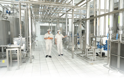 “生產設備來自中國和德國,當時用了40多節(jié)車廂才把設備都運到這里,組成自動化全封閉生產線?!睏罱苤钢喙S大門不到百米的鐵軌說,如今,公司年產駱駝奶粉480噸。