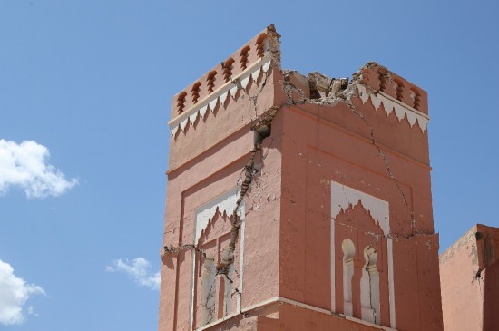 這是9月10日在摩洛哥震中附近的艾米茲米茲村拍攝的受損建筑。新華社記者王東震攝