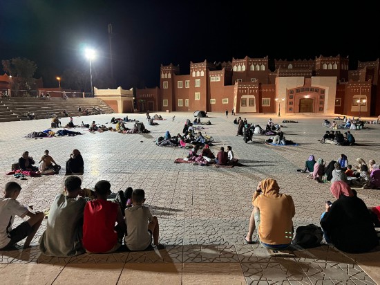 9月9日凌晨,在距離震中200多公里的摩洛哥瓦爾扎扎特市,居民在市區(qū)的空地避險(xiǎn)(手機(jī)照片)。新華社記者王東震攝