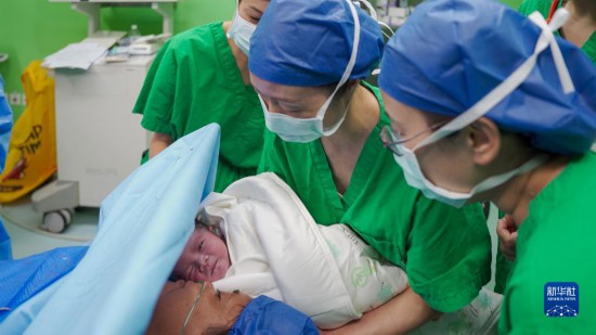 中國海軍“和平方舟”號醫(yī)院船執(zhí)行“和諧使命-2023”任務(wù)中的第3名“和平寶寶”在東帝汶誕生,新生兒與母親第一次見面(9月5日攝)。新華社發(fā)(李珂嘉賀 攝)