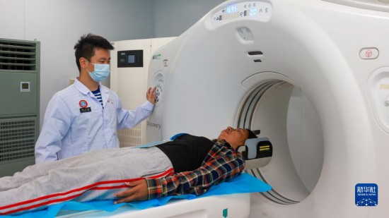 中國海軍“和平方舟”號醫(yī)院船訪問東帝汶并開展醫(yī)療服務(wù)期間,醫(yī)院船醫(yī)護人員為當?shù)孛癖娺M行CT檢查(9月6日攝)。新華社發(fā)(陳云飛 攝)