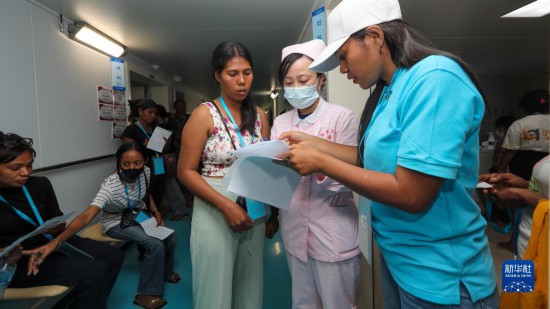 中國海軍“和平方舟”號醫(yī)院船訪問東帝汶并開展醫(yī)療服務(wù)期間,醫(yī)院船醫(yī)護人員為當?shù)孛癖娞峁┽t(yī)療服務(wù)(9月8日攝)。新華社發(fā)(黎宇 攝)