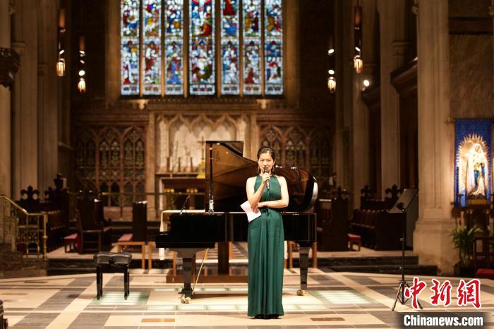 9月上旬,“東風”系列三音樂會在倫敦舉辦,來自不同國家和地區(qū)的9位杰出歌唱家分別用中文為100多位觀眾獻上了20首詩詞及民族民間藝術歌曲。圖為活動主辦者、旅英青年歌唱家錢亦萱主持音樂會。 Lexie Lin 攝