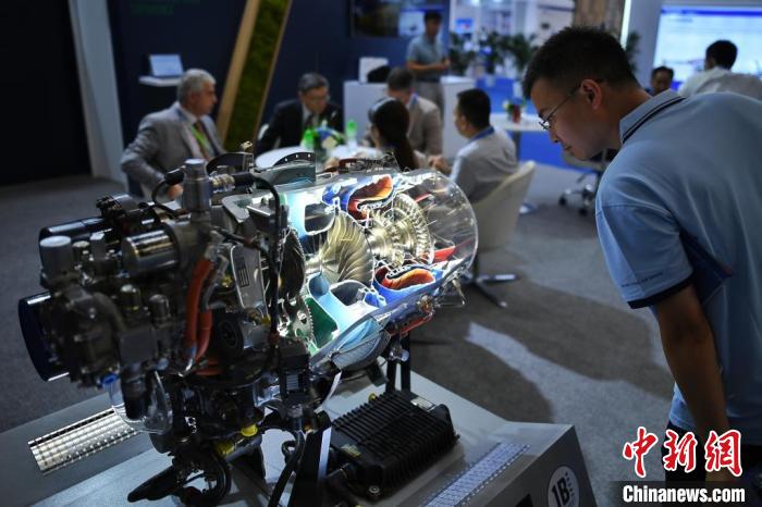 9月14日,與會(huì)者參觀直升機(jī)發(fā)動(dòng)機(jī)結(jié)構(gòu)展示。當(dāng)日,第六屆中國天津國際直升機(jī)博覽會(huì)在天津市空港經(jīng)濟(jì)區(qū)開幕。為期四天的博覽會(huì)吸引了來自全球20多個(gè)國家和地區(qū)的350余家直升機(jī)企業(yè)齊聚津門。 佟郁 攝