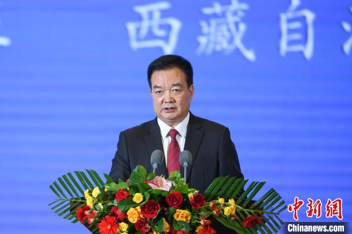 圖為西藏自治區(qū)人民政府主席嚴金海主持開幕式?!∝暩聛硭?攝