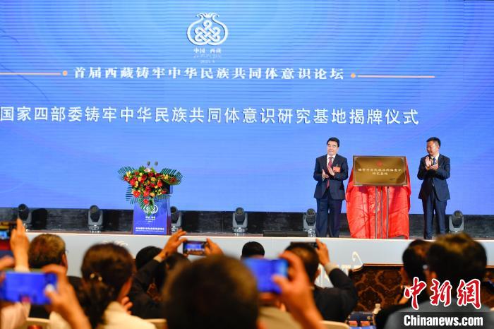 開幕式上,段毅君和西藏自治區(qū)黨委常委、宣傳部部長,西藏自治區(qū)著力創(chuàng)建全國民族團結(jié)進步模范區(qū)專項組副組長汪海洲為國家四部委“鑄牢中華民族共同體意識研究基地”揭牌。