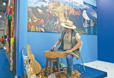 來(lái)自巴西里約州帕拉蒂市的多種口味甘蔗酒,現(xiàn)場(chǎng)制作的馬托格羅索州特色中提琴(見(jiàn)圖,本報(bào)記者時(shí)元皓攝),帕拉伊巴州的舞者身著傳統(tǒng)服飾翩翩起舞……近日,在里約會(huì)展中心舉行的第五十屆巴西旅行社協(xié)會(huì)博覽會(huì)上,來(lái)自巴西多個(gè)州、市的文旅部門(mén)和旅行社展示了豐富的特色商品和地方民俗文化,吸引大批參觀者駐足體驗(yàn)。