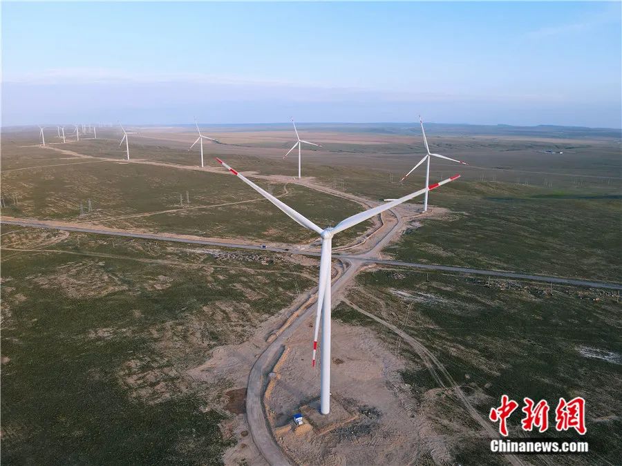 位于哈薩克斯坦南部地區(qū)的札納塔斯風(fēng)電項目于2021年并網(wǎng)發(fā)電,為當(dāng)?shù)靥峁┝饲鍧嵞茉幢U?。國家電?供圖
