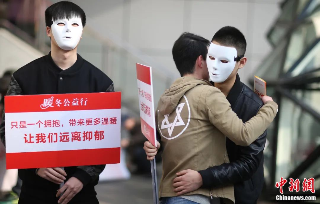 2016年1月3日,主題為“給抑郁癥患者一個(gè)擁抱”的暖冬公益行活動(dòng)在南京新街口正洪街廣場(chǎng)上舉行。泱波 攝