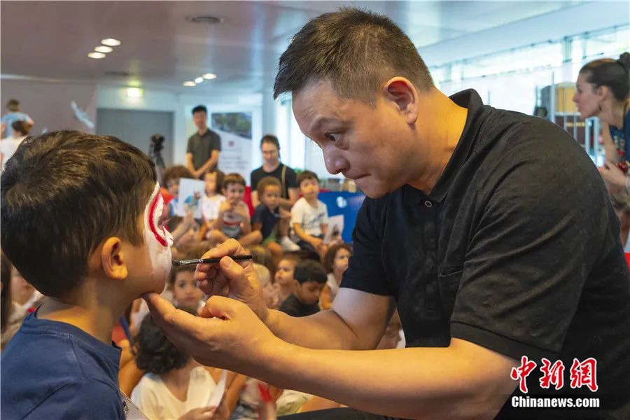 2023年9月赴法演出期間,昆曲走進(jìn)當(dāng)?shù)氐牟┪镳^、大學(xué)校園以及中國(guó)文化中心的工作坊。圖為柯軍帶領(lǐng)當(dāng)?shù)貙W(xué)生體驗(yàn)昆曲扮相??萝?供圖