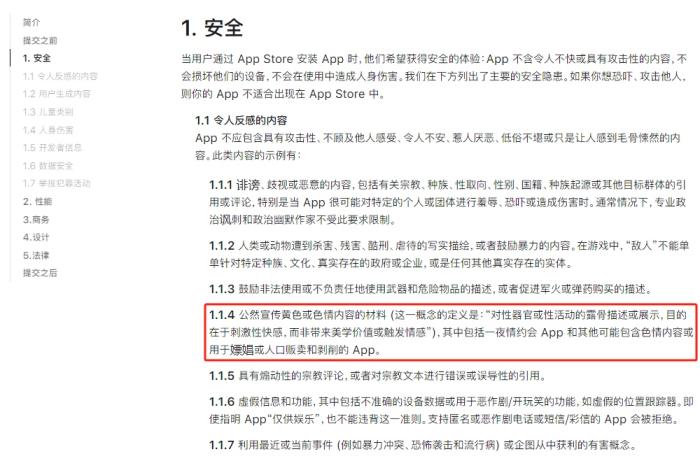App Store審核指南。截圖自蘋(píng)果官網(wǎng)