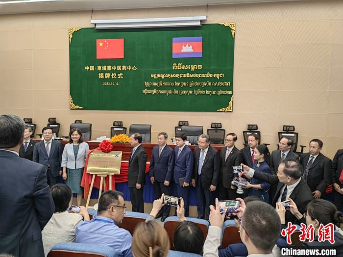 當?shù)貢r間10月12日,“中國—柬埔寨中醫(yī)藥中心”揭牌儀式在柬埔寨金邊考斯瑪中柬友誼醫(yī)院舉行。 中新社發(fā) 黎海月 攝