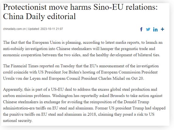 和評(píng)理|歐盟將對(duì)中國(guó)鋼鐵展開反補(bǔ)貼調(diào)查?或讓中歐雙方俱傷美國(guó)漁翁得利,應(yīng)謹(jǐn)慎行之