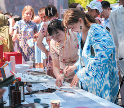 5月,“茶和天下·雅集”活動(dòng)在烏茲別克斯坦首都塔什干舉行,當(dāng)?shù)厥忻裨诨顒?dòng)現(xiàn)場(chǎng)通過(guò)書法、剪紙和工藝品展示等領(lǐng)略豐富多彩的中國(guó)文化。