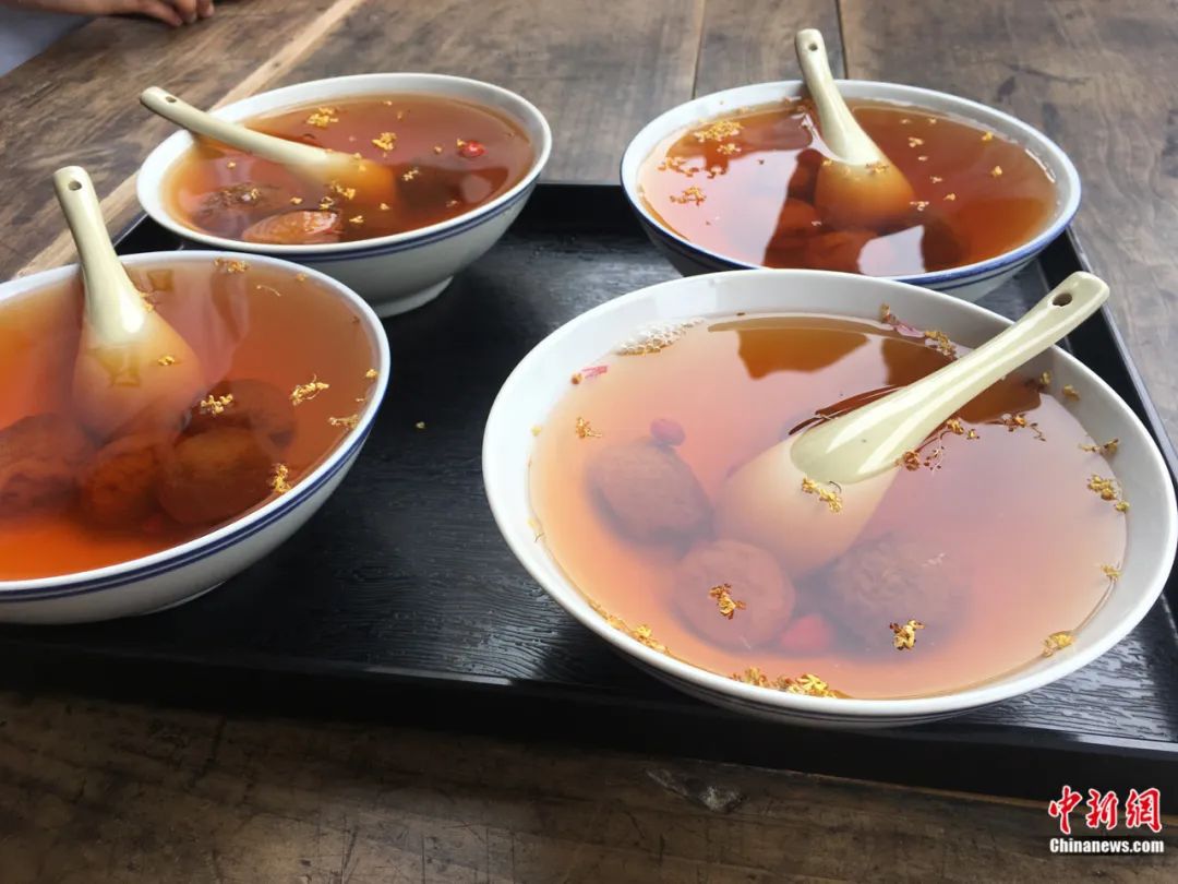 敦煌地方特色飲品杏皮水酸甜可口,深受游客青睞。張婧 攝