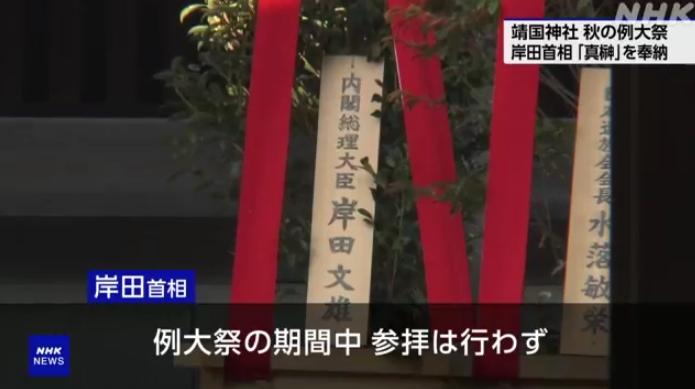 中新網(wǎng)10月17日電 據(jù)日本放送協(xié)會(huì)(NHK)報(bào)道,供奉有二戰(zhàn)甲級(jí)戰(zhàn)犯的靖國(guó)神社從10月17日開(kāi)始進(jìn)行所謂的“秋季大祭”,日本首相岸田文雄一早以首相名義,供奉了名為“真榊”的祭品。