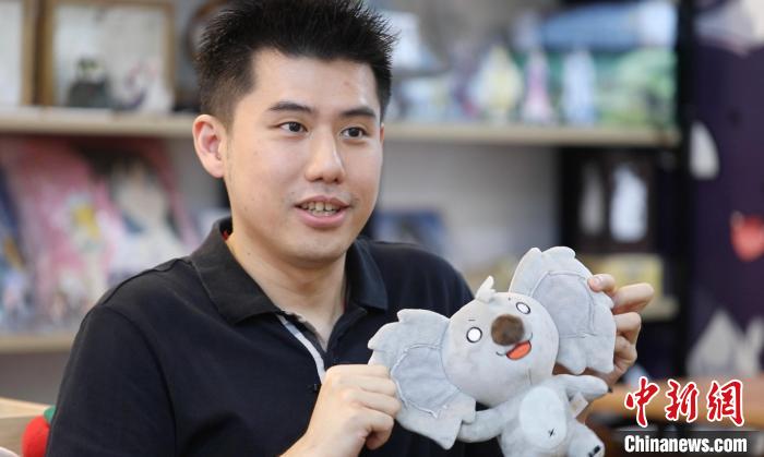 6月15日,創(chuàng)業(yè)臺青吳偉誠展示公司設(shè)計(jì)的動漫IP衍生品。中新社記者 張亨偉 攝