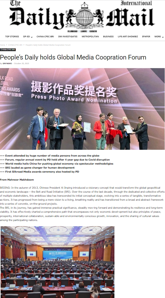巴基斯坦《每日郵報(bào)》網(wǎng)站報(bào)道2023“一帶一路”媒體合作論壇及首屆國(guó)際傳播“絲路獎(jiǎng)”頒獎(jiǎng)活動(dòng)