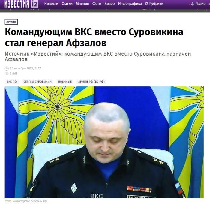 俄新社在其履歷中寫到,2023年8月,阿夫扎洛夫再次被任命為俄空天軍代理總司令,2023年10月20日,被任命為俄空天軍總司令。