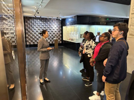 10月23日,在中國酒文化城,2023“一帶一路”媒體合作論壇聯(lián)合采訪團團員認(rèn)真聆聽講解。本報記者 劉書文攝