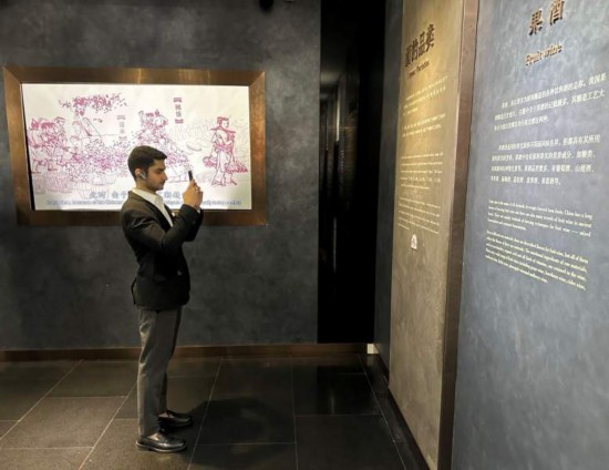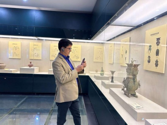 10月23日,2023“一帶一路”媒體合作論壇聯(lián)合采訪團團員在中國酒文化城認(rèn)真觀看展覽。本報記者 劉書文攝
