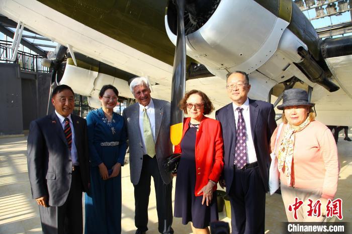 捐贈(zèng)儀式結(jié)束后,與會(huì)嘉賓共同參觀飛機(jī)館。辛西婭·陳納德看到曾在駝峰航線使用過的C-47運(yùn)輸機(jī)時(shí),她興致勃勃地爬上駕駛艙,并與美國(guó)飛虎隊(duì)歷史委員會(huì)總裁拉里·林恩·喬布一起向嘉賓揮手示意。