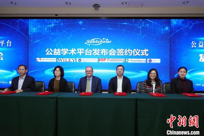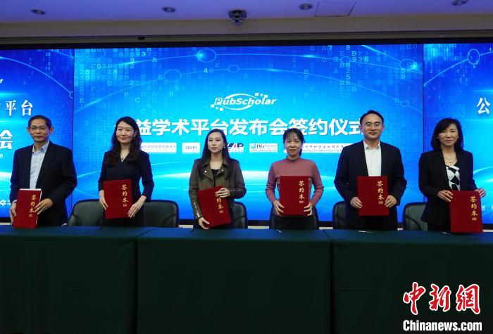 11月1日,“PubScholar公益學術(shù)平臺”在中國科學院文獻情報中心正式發(fā)布,并在發(fā)布會上舉行相關(guān)合作簽約儀式。中新網(wǎng)記者 孫自法 攝