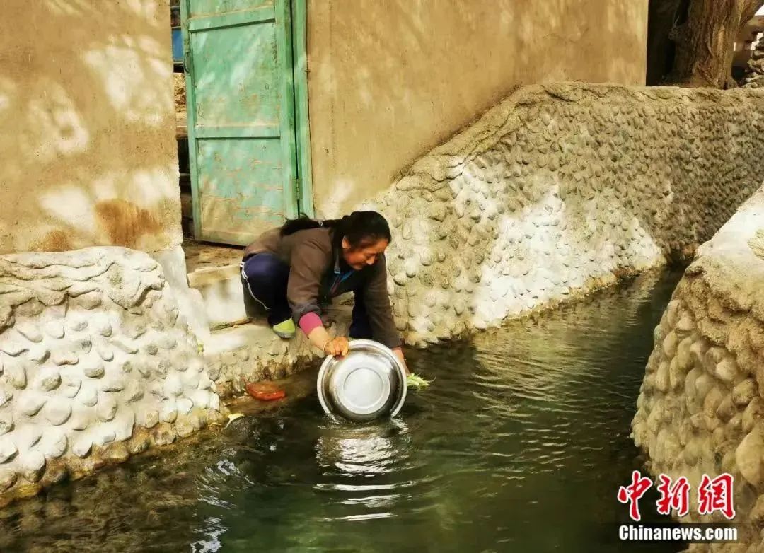 居民在坎兒井明渠洗菜。圖片來自吐魯番零距離