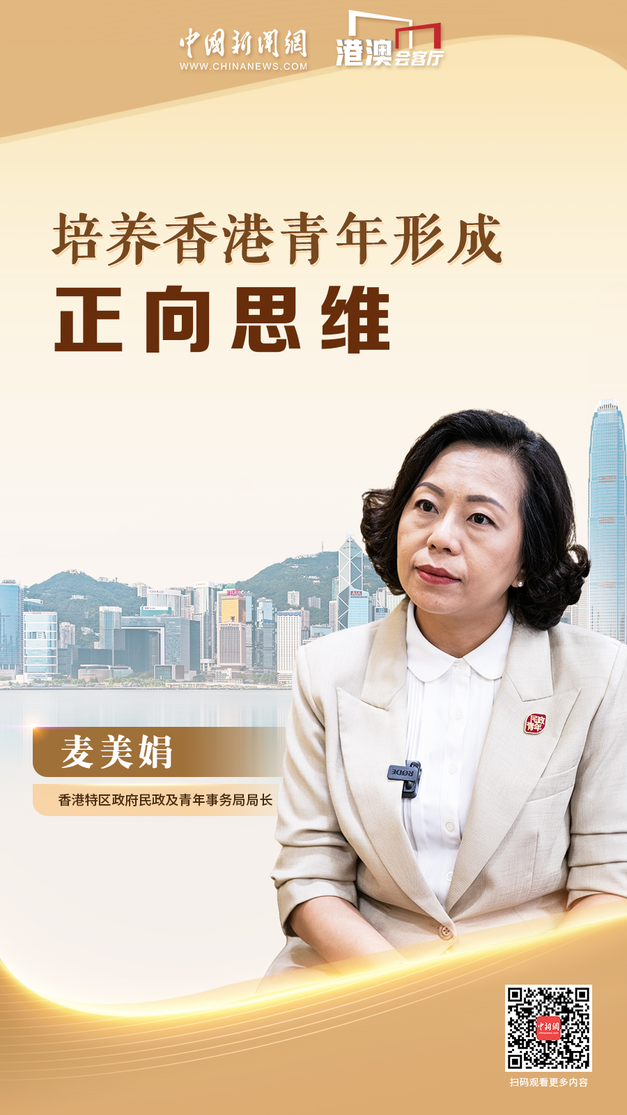 香港特區(qū)政府民政及青年事務(wù)局局長(zhǎng)麥美娟近日接受中國(guó)新聞網(wǎng)“港澳會(huì)客廳”欄目專訪時(shí)表示,要培養(yǎng)香港青年形成正向思維。