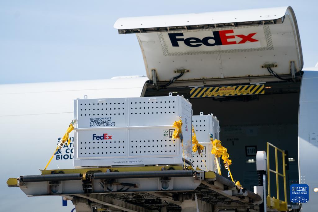 當(dāng)天上午,華盛頓史密森學(xué)會(huì)國家動(dòng)物園工作人員將三只裝有大熊貓的特制“旅行包廂”、220磅(約合100公斤)竹子、飲用水及相關(guān)物資運(yùn)上卡車。隨后,載有“美香”“添添”和“小奇跡”的車隊(duì)駛離動(dòng)物園,前往華盛頓杜勒斯國際機(jī)場(chǎng)。