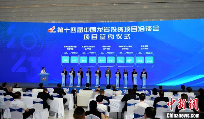 11月8日,第十二屆海峽兩岸機(jī)械產(chǎn)業(yè)博覽會(huì)暨第十四屆中國(guó)龍巖投資項(xiàng)目洽談會(huì)在福建省龍巖市拉開(kāi)帷幕。圖為現(xiàn)場(chǎng)簽約。中新網(wǎng)記者呂明攝