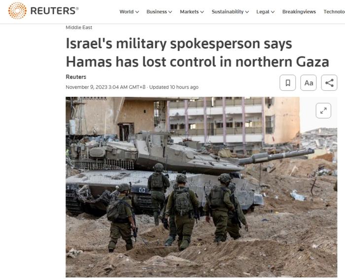 中新網(wǎng)11月9日電 據(jù)路透社報道,當?shù)貢r間8日,以色列軍方發(fā)言人丹尼爾·哈加里(Daniel Hagari)表示,隨著數(shù)千居民向南遷移,巴勒斯坦伊斯蘭抵抗運動(哈馬斯)已經(jīng)失去了對加沙地帶北部的控制。