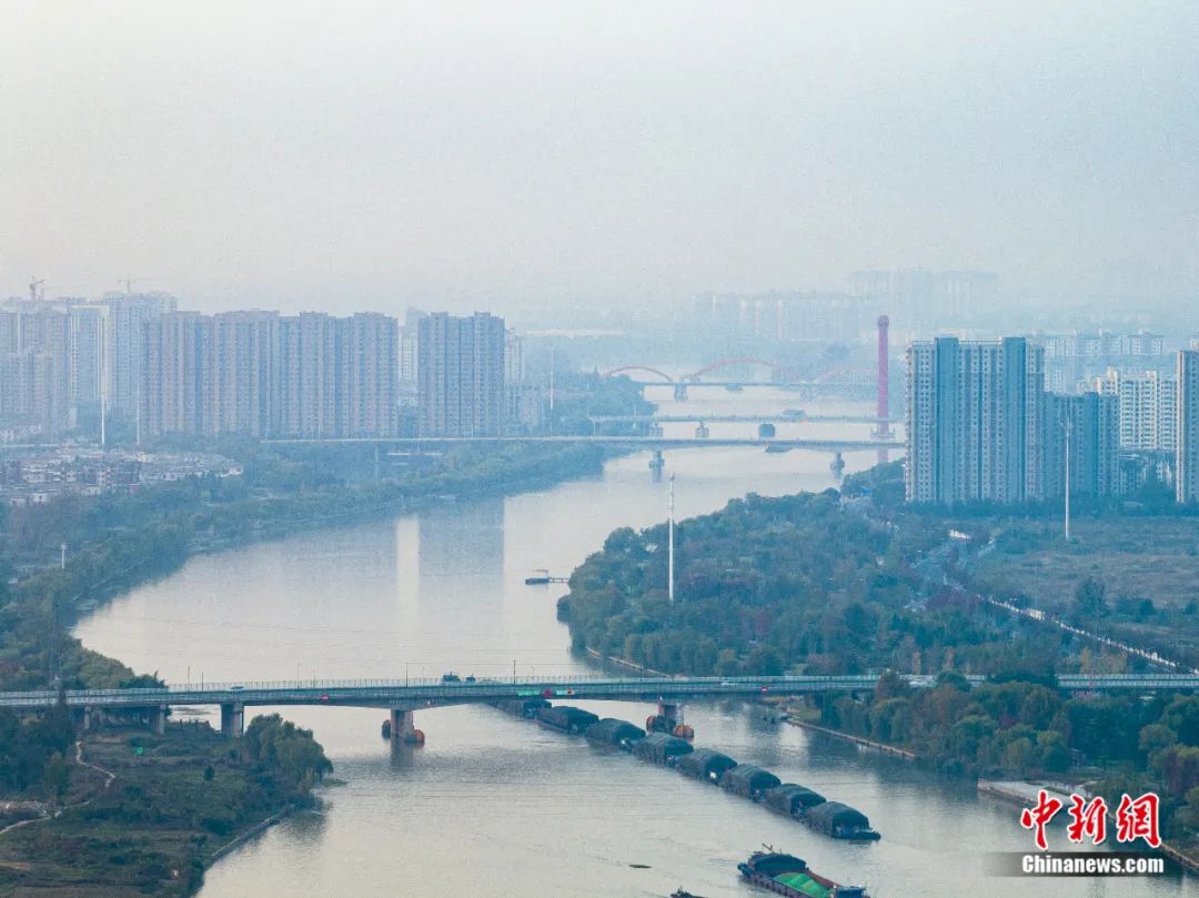 2023年10月29日清晨,貨船行駛在京杭大運河江蘇省宿遷段。柴軍委 攝